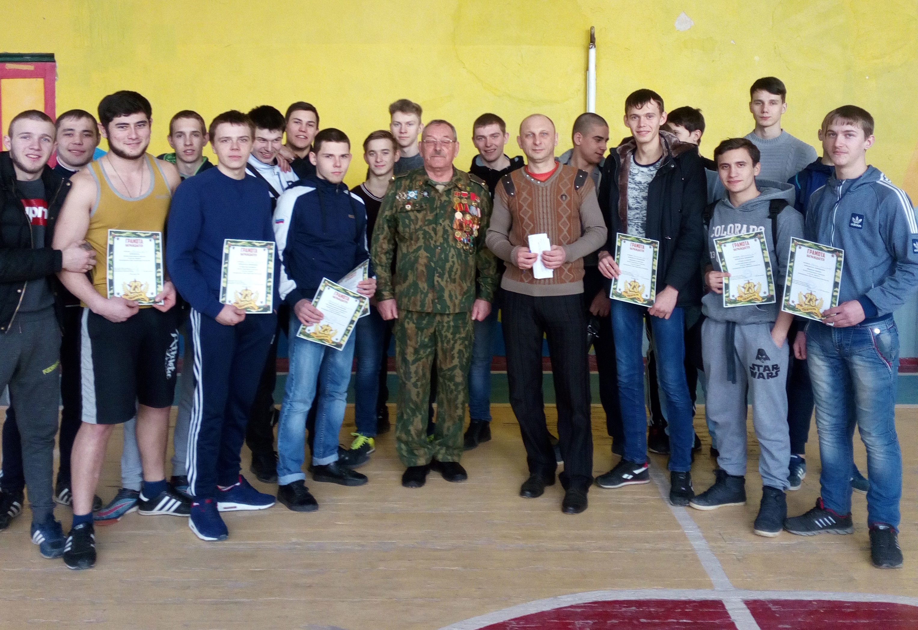 20 февраля 2018г. в корпусе № 3 ГБПОУ ВИТ при поддержке МДЦ «Ракурс» МУ «Форум» состоялся военно-спортивный праздник – конкурс мужества «А ну-ка, парни!». Соревнования по военно-прикладным видам спорта, состоялись в честь празднования Дня защитника Отечества. Праздник начался со сбора обучающихся – болельщиков, преподавателей, гостей. Шесть команд – участников торжественным маршем зашли в спортзал, где их приветствовали и открыли соревнования ответственные судьи. Участникам состязаний необходимо было пройти 9 этапов. Спортсмены изо всех сил старались показать лучший результат и победить. Можно только восхищаться их упорством, выносливостью и силой! При громкой поддержке болельщиков прошла эстафета «Челночный бег». Веселая музыка, строгие судьи, последние наставления капитанов команд – все это создавало атмосферу радости, спортивного азарта, сплоченности соревнующихся. После подведения итогов судейской коллегией, были объявлены победители и вручены заслуженные грамоты от МУ «Центр по работе с подростками и молодежью «Форум».