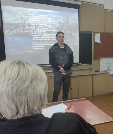 Конкурсное стихотворение для прочтения было связано с темой Родины и героями Отечества: «The days are done» (Дж. Байрон). Целью конкурса стало выявление талантливых студентов, формирование и развитие коммуникативной и социокультурной компетенции, а также познавательного интереса к иностранным языкам. Конкурс стал стимулом к дальнейшему саморазвитию и самообразованию.